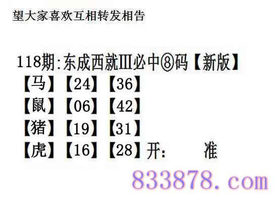 主题 : 118期:另版【东成西就四肖8码】