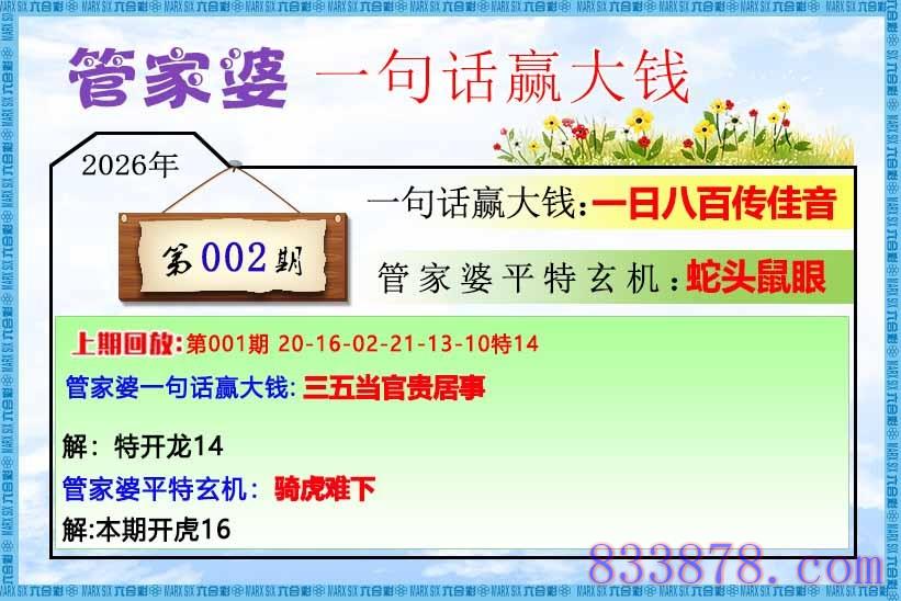 主题 : 002期:管家婆一句话赢大钱