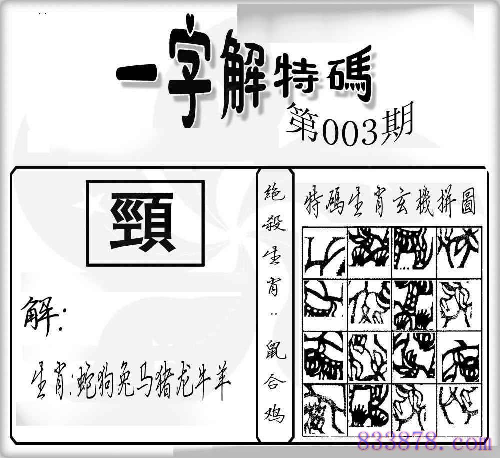 主题 : 003期:一字解特码